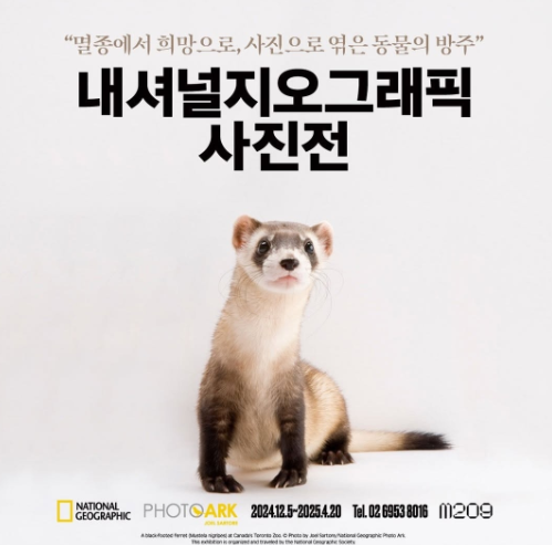 서울 송파에 위치한 뮤지엄209에서 열리는 〈내셔널지오그래픽 사진전〉 전 세계 생물 종의 멸종을 막고 그 아름다움을 보존하기 위한 전 지구적 프로젝트의 결과를 담은 감동적인 자연 다큐 사진전입니다. 내셔널지오그래픽(National Geographic)의 대표 작가 조엘 사토리(Joel Sartore)가 17년에 걸쳐 기록한 12,000여 종의 동물 중 100여 종의 결정적 순간을 엄선하여 한국 관객에게 처음 공개합니다.