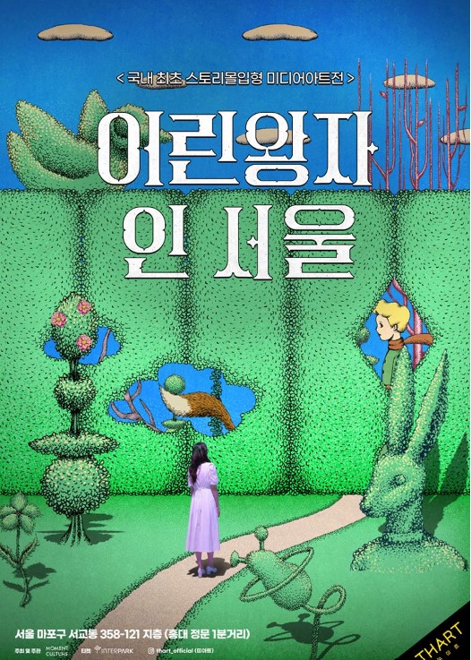 어린왕자 출간 80주년을 맞아 6월 3일에 시작된 <어린왕자 인 서울> 전시가 내년 4월 30일까지 연장됩니다. 오전 11시부터 오후 8시까지 관람이 가능하며 입장은 오후 7시에 마감됩니다. 티켓은 14,000원입니다. 띠아트는 2호선 홍대입구역 9번 출구에서 도보로 6분 거리에 있습니다. 주차장은 따로 없으며, 주변 교통이 혼잡할 가능성이 있어 대중교통 이용ㅇ르 권장합니다.