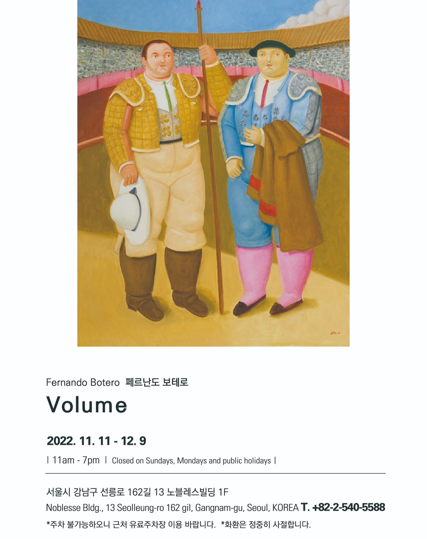 청담동 노블레스 컬렉션에서 22.11.11 ~ 12.9 한 달간 페르난도 보테로의 작품이 전시됩니다. 화~토요일 11시에서 오후 7시 관람이 가능하며, 일요일과 월요일, 공휴일은 휴관일입니다. 유진갤러리 진행으로 8점의 페인팅 작품으로 구성되어, 무료로 방문하여 작품을 보실 수 있습니다. 전시관은 분당선 압구정로데오역 3번 출구에서 도보 3분 거리입니다. 참고로 노블레스 컬렉션은 'Bring Art to Life'이란 슬로건으로 생활 속에 창의적이고 수준 높은 예술을 전달하기 위해 만들어진 아트스페이스로, 소규모의 다양한 전시가 계속 이뤄지고 있습니다.